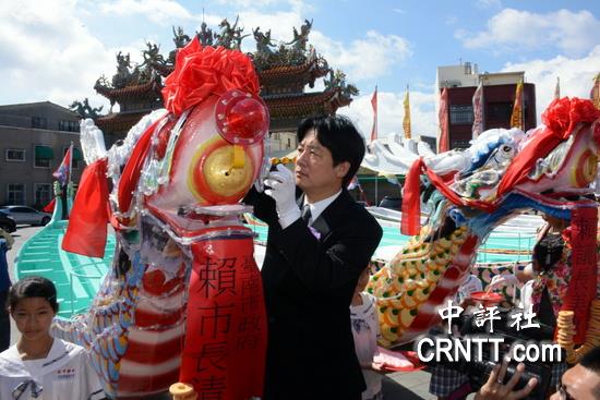 台南市长赖清德为台南龙舟开光点睛,欢迎大陆组队来台南参赛。(图片来源:香港中评社)