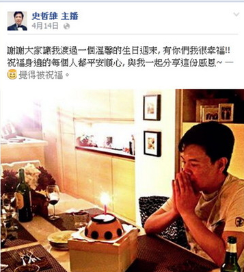 4月过生日时,史哲维在脸书和粉丝团表达感动心情:“有你们我很幸福!”且使用“觉得被祝福”的天使光环小图,9日和妻子施明黎出席化妆晚会时说:“周五夜的面具趴,我们都需要放松一下。”文末选用“觉得充满希望”图示,隔周竟然就陈尸家中。