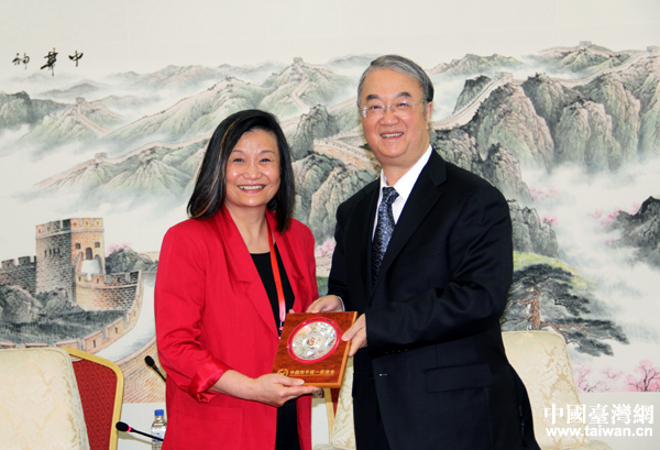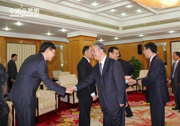 19日下午,中国统促会副会长桑国卫在京会见了以林清为团长的全美中国和平统一促进会联合会访问团一行。(中国台湾网 普燕 摄)