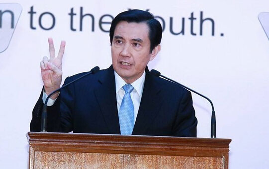 马英九上任六周年赴中国医药大学演讲。(台媒图)