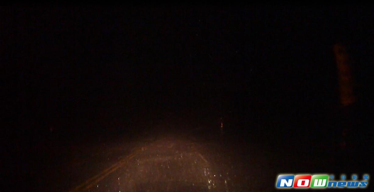 23日晚间澎湖受到麦德姆台风侵袭,雷雨交加,路上开车都快看不清楚。(图片来源:台湾今日新闻网)