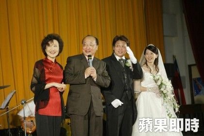 孟庭苇(右起)2004年与张志鹏结婚,台中市长胡志强还帮忙证婚。(图来自台媒)