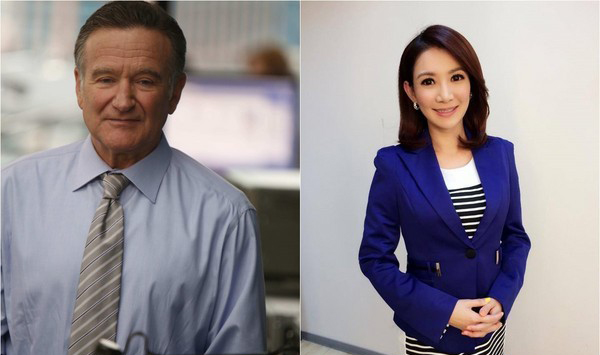 台湾美女主播简立喆(右)在脸书怀念罗宾威廉姆斯。(图片取自台媒)