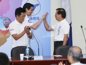 国民党中常会上马英九和候选人击掌造势。(图片来源:台湾《联合报》)