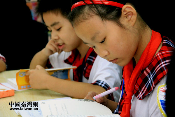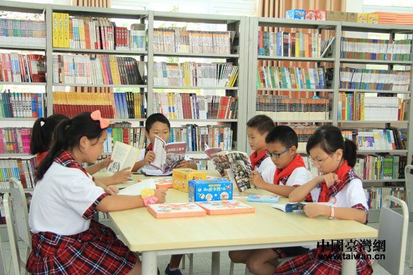 雅安汉源富林三小的“康师傅安康图书馆”中,孩子们沉浸在书籍的海洋中(中国台湾网 李徽 摄)
