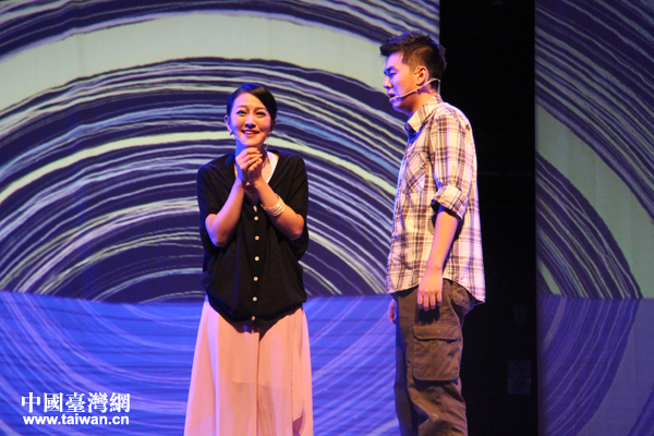 《永远的微笑》剧照。图为由台籍研究生蔡珮颖扮演的何来母亲(左)与曲艺扮演的何来。(中国台湾网 张洁 摄)