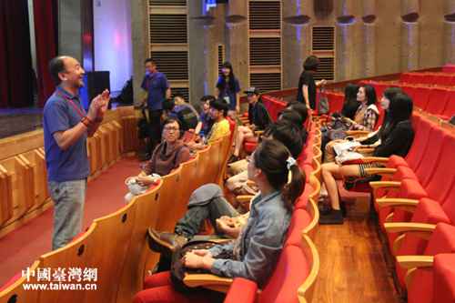 王劲松导演热情地向大家介绍话剧《永远的微笑》与目前剧组正紧锣密鼓展开的准备情况,并欢迎大家届时前来观看话剧。(中国台湾网 张洁 摄)