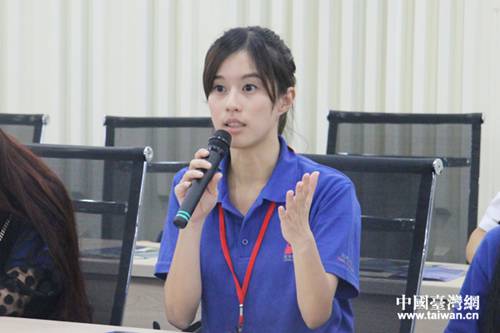 图为《永远的微笑》演员,台籍学生廖晓彤针对成功大学学生提问进行发言。(中国台湾网 张洁 摄)