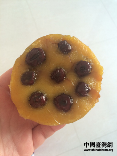 亲戚家做的糕,个头较小,内容丰富。(中国台湾网 张玲 摄)