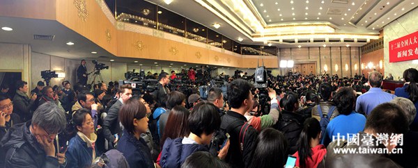 第十二届全国人大第三次会议4日举行首场新闻发布会,图为新闻发布会现场(中国台湾网 高斯斯 摄)