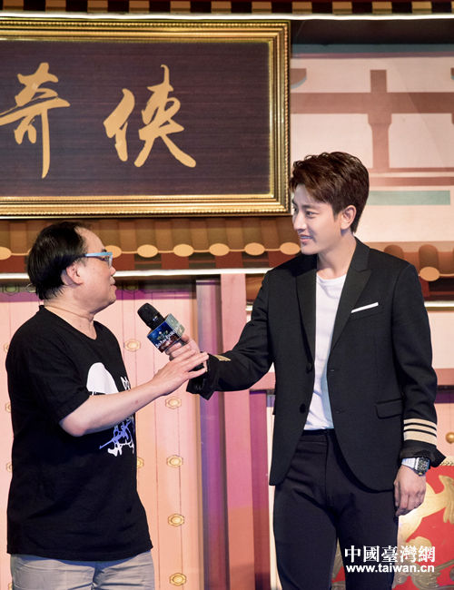 武侠宗师温瑞安、当红实力派偶像贾乃亮出席《神州奇侠》影游联动发布会。(中国台湾网 高斯斯 摄)