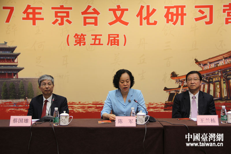 台盟北京市委主委陈军在开营仪式上致辞表示,绵延五千年的中华文化是联结两岸最牢固的精神纽带,是中华民族凝聚力的坚实根基。两岸青年同为中华儿女,更是割舍不开的命运共同体。希望大家在这几天的体验式交流中,认真践学,积极思考,用心感悟中华民族的悠久历史和灿烂文明,主动参与到两岸的文化交流中来。更希望两岸青年肩负起时代赋予的责任,坚定信心,携手同行,共同为两岸关系和平发展贡献心力,同心实现中华民族伟大复兴!