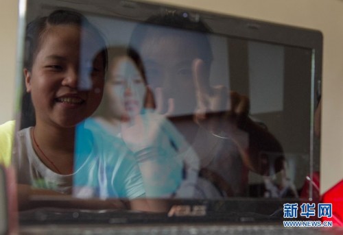 8月20日,在巴南区南彭街道将军湾村,留守儿童杨渝(左)在大学生村官汪琼的帮助下和母亲视频聊天。当日,重庆市巴南区200多名大学生村官来到结对帮扶的留守儿童家中为他们补习功课,让他们和在外地的家长视频聊天,并为孩子们进行心理辅导。本次活动还专门为留守儿童准备了一堂“收心”课,帮助孩子们提前适应新学期的到来。新华社记者陈诚 摄