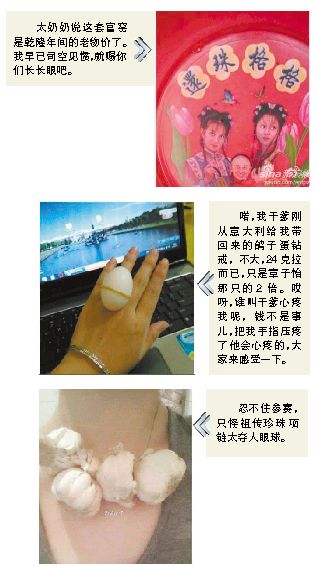 本报讯 近日,一场莫名的“炫富大赛”在微博上突然走红。许多网友争相秀出“价值连城”的古董身家,脖挂风油精当祖母绿项链、青葡萄串成玛瑙手链、三色发卡拼称斯里兰卡宝石手镯……更有一件印有《还珠格格》演员销魂表情的脸盆,也被当做“官窑”来“炫富”,可谓欢乐一片,惹得任泉围观并转发给林心如,林心如看后也吃惊抛出一句“哎呀妈呀”。