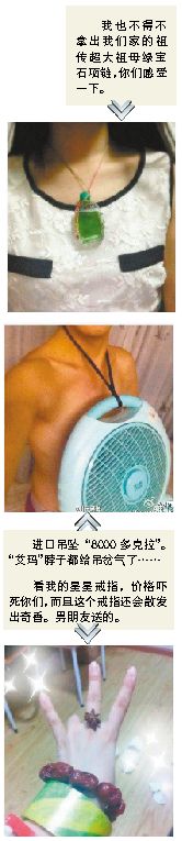 网友微博接力创意“惊人” 香皂、风扇、鸡蛋均成“炫富”道具
