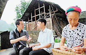 杨友进(左一)在与学生谈心