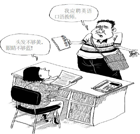 无论承认与否,这就是国内英语培训市场的现实。英语在中国家长眼里是一种象征,代表着对孩子未来的美好期待,而外教则是这种期待完美的心理安慰。在心浮气躁的家长面前,培训机构只好睁一只眼闭一只眼,看肤色选外教,以“金发碧眼”、最“像”欧美人的尤佳,至于教师的实际水平,似乎都顾不上了。