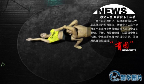 台海网(微博)9月19日讯据新华网报道,2013年9月5日,广州,分别代表“冰”与“火”的男女杂技演员,在高高升起的舞台上,配合着背景LED大屏幕展现的炫目图像,恬静中不失霸气地用多个高难度姿势展示着常人难以企及的柔韧、平衡、力量等绝技,以震慑全场的气场,令观众屏息凝神且提心吊胆,匪夷所思又心悦诚服。节目以LED背景中极光照耀与冰火交融的瞬间,男女演员猛然相拥入怀结束,象征着冰与火最终打破了时空的运转规律,历经冲突、碰撞而归于平静、和谐,深刻地诠释着冰与火、男与女、阴与阳、刚与柔、动与静等事物两极的对立、沟通、妥协、平衡与和解,引人回味、遐想。