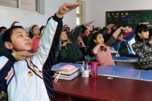 11月以来,该校在学生中推广这个操,目前全校师生已熟练掌握。雾霾天气下,上下午在室内各做操2次。
