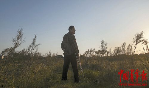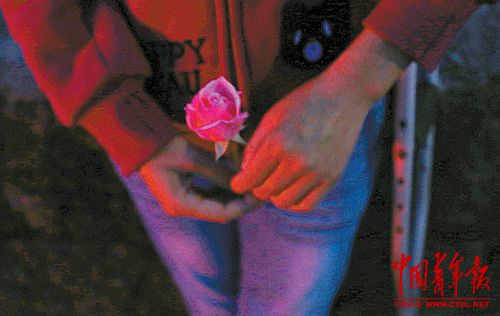 晚上,郭云在和邻居家的孩子一起散步,孩子送给她一朵小花。王中杰摄