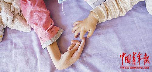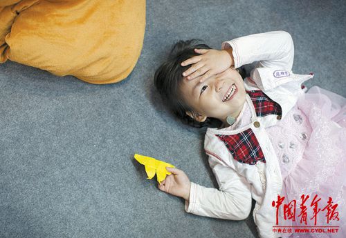小嘉璐,尼曼匹克C型患者。她每天癫痫多次,手脚畸形,1岁的表弟爬上床和她玩。梁莹菲摄