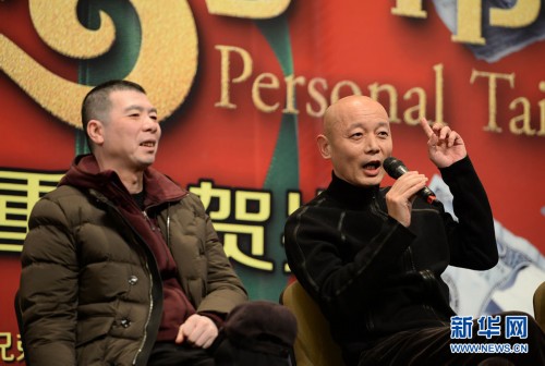 12月19日,在上海交通大学,《私人订制》导演冯小刚(左)、主演葛优与师生互动。