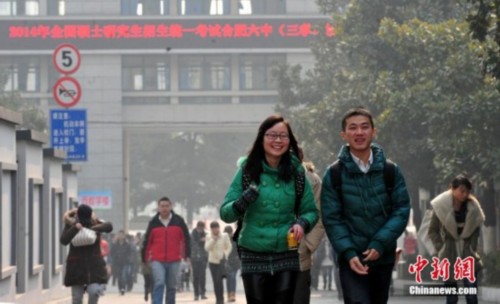 1月4日,参加2014年“全国硕士研究生入学考试”的考生涌入安徽合肥某考点。当日,2014年中国硕士研究生入学统一考试拉开大幕,报考人数达到176万。中新社发 韩苏原 摄