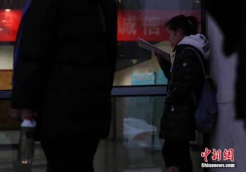 1月4日,在北京电影学院考点,一位正在复习等待入场考试的学生。当日,2014年中国硕士研究生入学统一考试开考。中新社发 熊然 摄