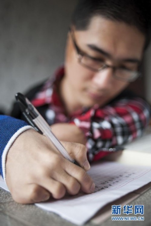 1月6日,范凌在宿舍复习功课。新华社记者姜克红摄