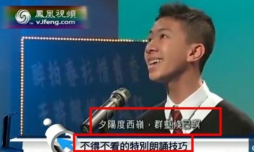 梁逸峰同学还对自己的朗诵技巧进行解读,在诗的初段,他会装作四处看风景,而诗末句“孤琴候萝径”讲述作者等候友人,所以他要继续张望下去。
