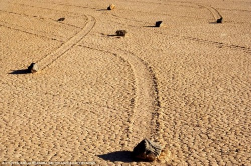 美国加州死亡谷:700多磅的石块在平坦的河床上滑行。