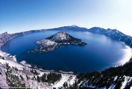 美国俄勒冈州的克雷特湖:150年前,马扎马火山倒塌,形成了这片大湖。
