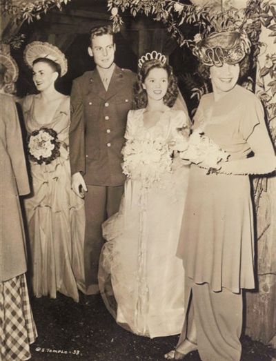 1945年,17岁的邓波儿同约翰·阿加尔结婚(左图),1949年离婚。1950年12月16日她和查尔斯·布莱克再婚。两段婚姻共育有两女一子。