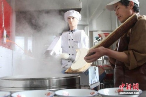 新学期刚刚开始,江西师范大学[微博]瑶湖校区第二食堂就请来了一位非常受欢迎的“大厨”——刀削面机器人。据介绍,它平均一分钟能削4-5碗面,一上岗就受到了同学们的围观。26日中午,许多同学借排队购买刀削面的机会,争相一睹其真容。