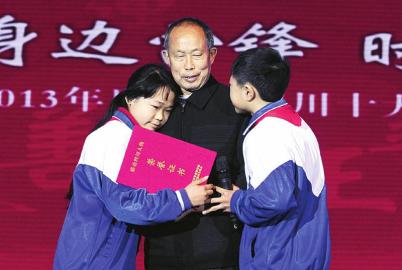 和代天久一起上台的是两个杉木小学的小学生刘亚龄和龚兴萍,他们说,长在大山里的他们是第一次到成都来,上台难免有点紧张,但是想到代老师在身边也就不紧张了。