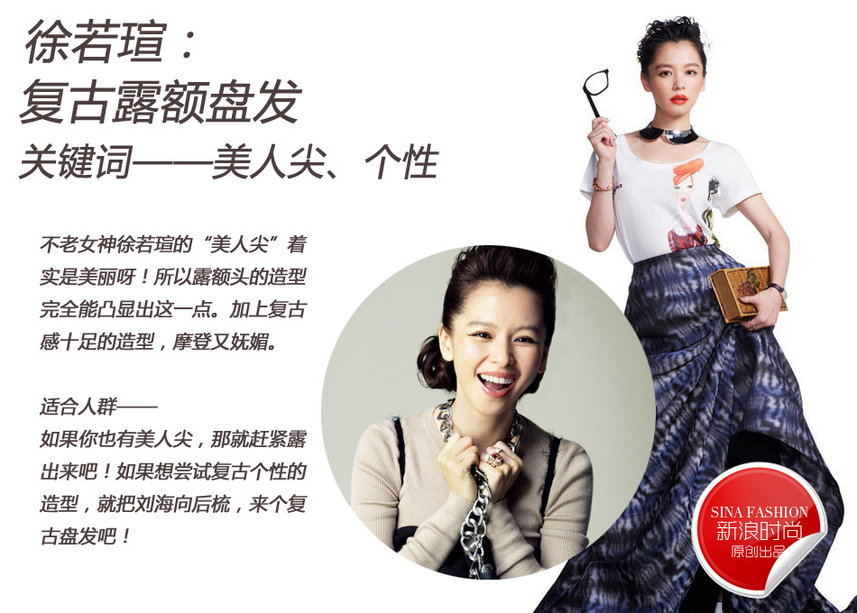 不老女神徐若瑄的“美人尖”着实是美丽呀!所以露额头的造型完全能凸显出这一点。加上复古感十足的造型,摩登又妩媚。