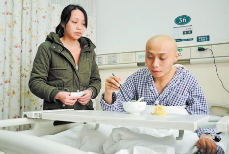 病房里,文玲尽量让弟弟吃好一点。因为家里连遭不幸,文玲的脸上过早地失去了光泽和笑容。贺文兵 摄