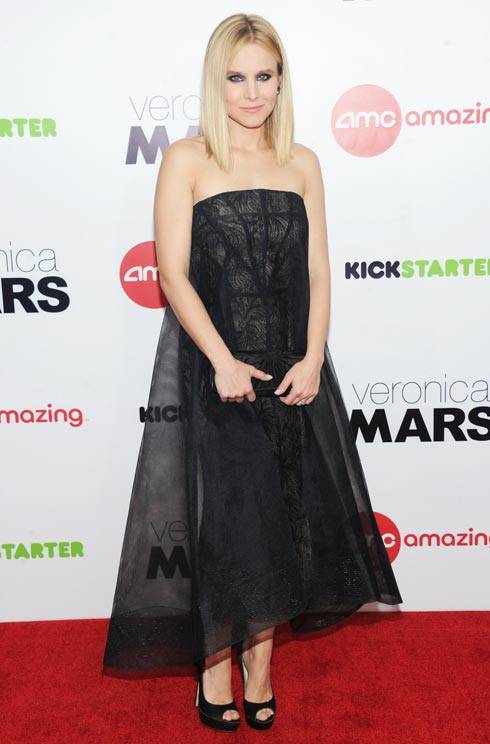 克里斯汀·贝尔(Kristen Bell):3月10日,美国女演员克里斯汀·贝尔现身电影《美眉校探》(Veronica Mars)纽约宣传活动现场。她身着Monique Liuhlier薄纱裙,穿着鱼嘴高跟鞋,脸上画着浓浓的烟熏妆,把狂野和优雅的气质演绎到淋漓尽致。