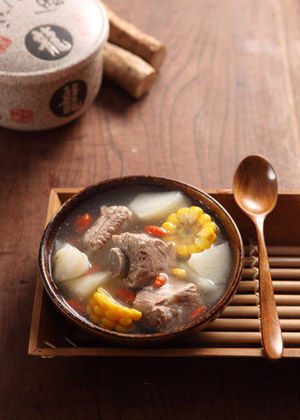 中餐:山药炖排骨,香菇上海青,青椒甜玉米,半碗饭
