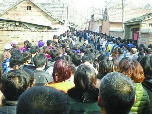 那支佩戴白花的队伍是从河南省周口市郸城县秋渠乡第一中学的门口开始排起来的。校门口的水泥路50多米长,右拐,就是秋渠乡大街。街上的商户们也加入了吊丧队伍中,人群在大街上排了100多米,拐入一条坑坑洼洼的土路。然后,里三层、外三层的乡亲们排了又是快50米,才到秋渠一中校长张伟家4间堂屋所在的那条小胡同。