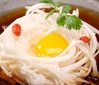 1.将蜂蜜与干桂花放在小碗中混合均匀,备用。山药去皮,切成大段,放入锅中蒸熟,切成0.5cm厚的片,放凉。