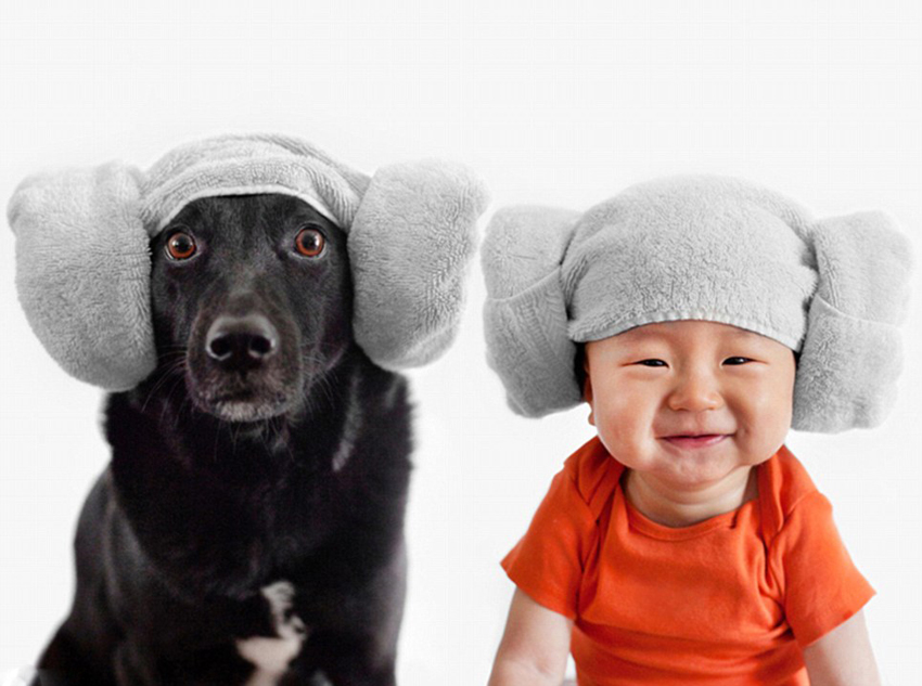 美宠物狗与男童做“双胞胎”拍有爱造型照 图