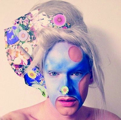 有荒诞的 加拿大化妆师男扮女装,用化妆品以及改装发套自拍怪诞照。