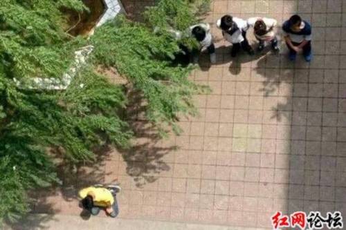 高一男生午休时打篮球被当众罚跪 学生称是遵母命(图)