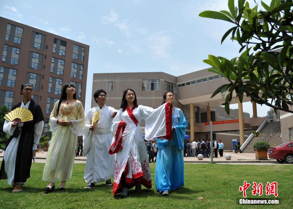 5月15日,中科大的学生们身着古装,上演真人“穿越”游戏。当日,位于合肥的中国科技大学举行“花开半夏,古装游园”活动。学生们穿上古装,参加“射箭”、“投壶”等游戏,古色古香又趣味无穷。中新社发 韩苏原 摄