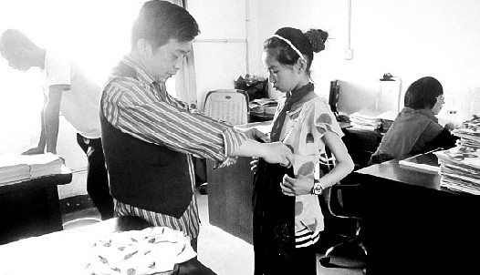 图为:陈发喜经常给学生买衣物