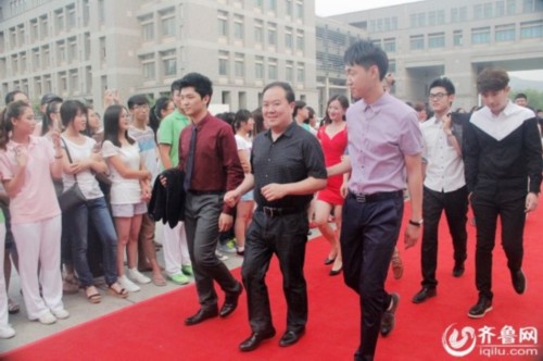 原标题:山东高校毕业生携导师走红毯 自办晚会告别校园