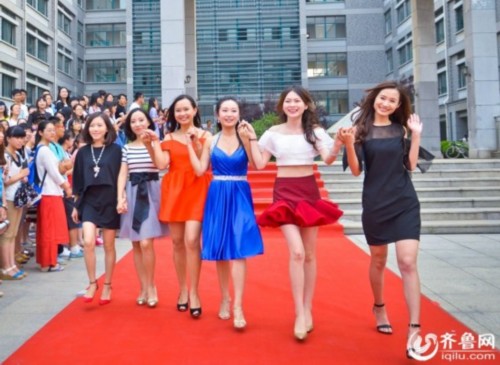 原标题:山东高校毕业生携导师走红毯 自办晚会告别校园