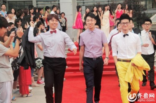 原标题:山东高校毕业生携导师走红毯 自办晚会告别校园