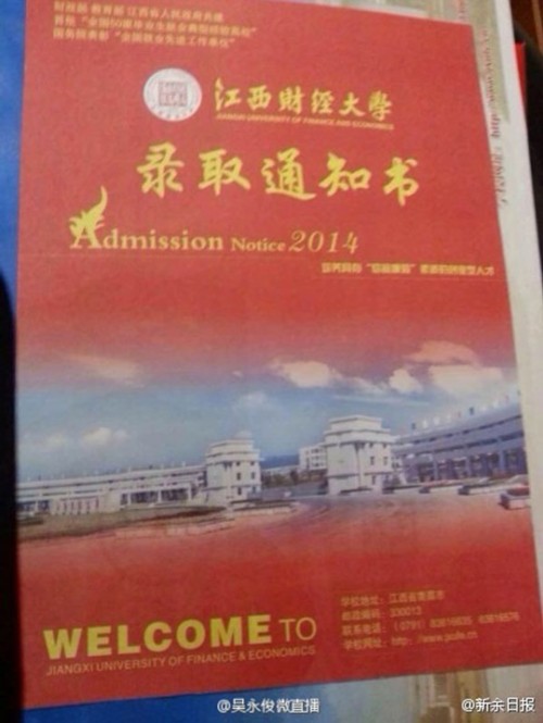 7月9日,江西“最美考生”柳艳兵、易政勇领到了录取通知书。据悉,柳艳兵被南昌大学建筑系土木工程专业录取,易政勇则被录取到江西财经大学工商管理类。